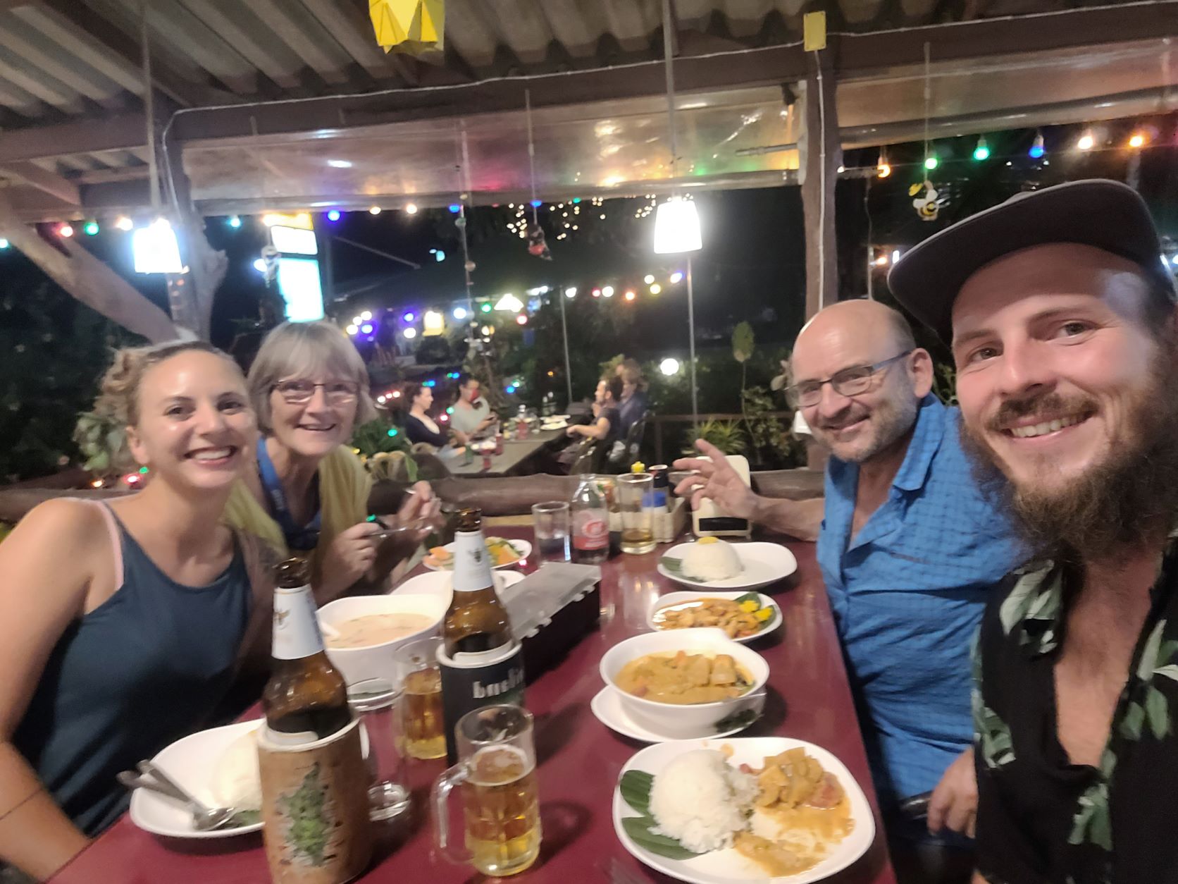 Nach Surat Thani, erwarten uns strahlend Marco und Shari. Nach 4 Monaten ein sehr freudiges Wiedersehen. Wir reisen nun zusammen zwei Wochen den Süden von Thailand ab. Es gibt ja vieles zu erzählen, deshalb steuern wir als aller erstes ein lokales wunderbares Thai-Kaffee an. Wir sind jetzt schon hingerissen, von Umgebung, Klima, Freundlichkeit den Leute. Wir lauschen den sehr spannenden 4 monatigen Reiseerfahrungen von Marco und Shari. Wir merken jetzt, wir sind angekommen, HURRAA!!! Für uns sind es viele, sehr gute und nützliche Hinweise, die man zum Reisen so braucht.
