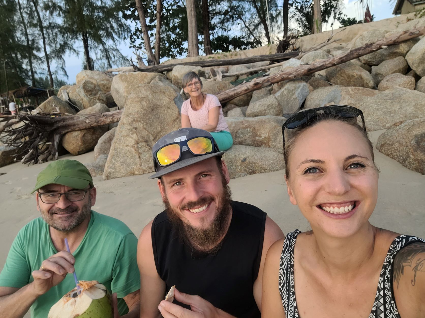 Nach vier Monaten Reise in Südostasien ist die Vorfreude Marco's Eltern wiederzusehen riesig. Ungeduldig warten wir am Hafen bis die Fähre von Koh Samui eintrifft. Endlich sind Sie ganz am Ende einer langen Personenschlange zu sehen. Ein paar Freudentränen lassen sich nur schwer unterdrücken als wir uns alle wieder fest in den Armen halten. Kurzerhand fahren wir zu einem nahegelegenen Kaffee und starten mit dem Austausch unserer Erfahrungen und Erlebnisse.