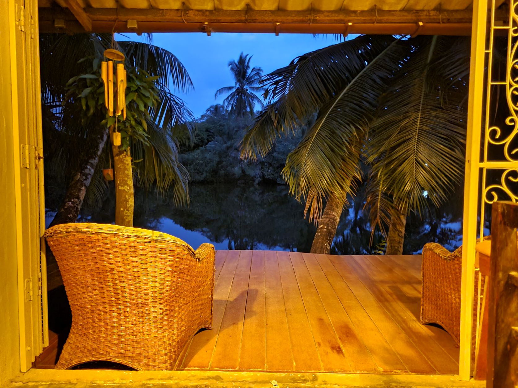 Ich musste aufs WC. Christoph meinte, vorne links, dann rechts. Es sei eine sehr schöne, gut gelüftete Bambushütte. Ich lief los, eine ältere Frau kam, zupfte mich am Ärmel, nahm mich an der Hand und führte mich weiter. Ein ungewisses Gefühl kam auf. Sie lief zum ersten Haus und meinte: "No WC , my house, mhm?" Dann ging sie zu einem kleinen Häuschen und meinte :"for you." Ja, tatsächlich, ein sehr schönes Häuschen. Ich kam zurück und fragte die andern. Es stellte sich heraus, dass die Tür der alten Frau offen stand, die andern gingen somit in ihre Wohnung pinkeln und meinten im Nachhinein noch, der Boden sei nass. Wir mussten alle herzlich lachen.