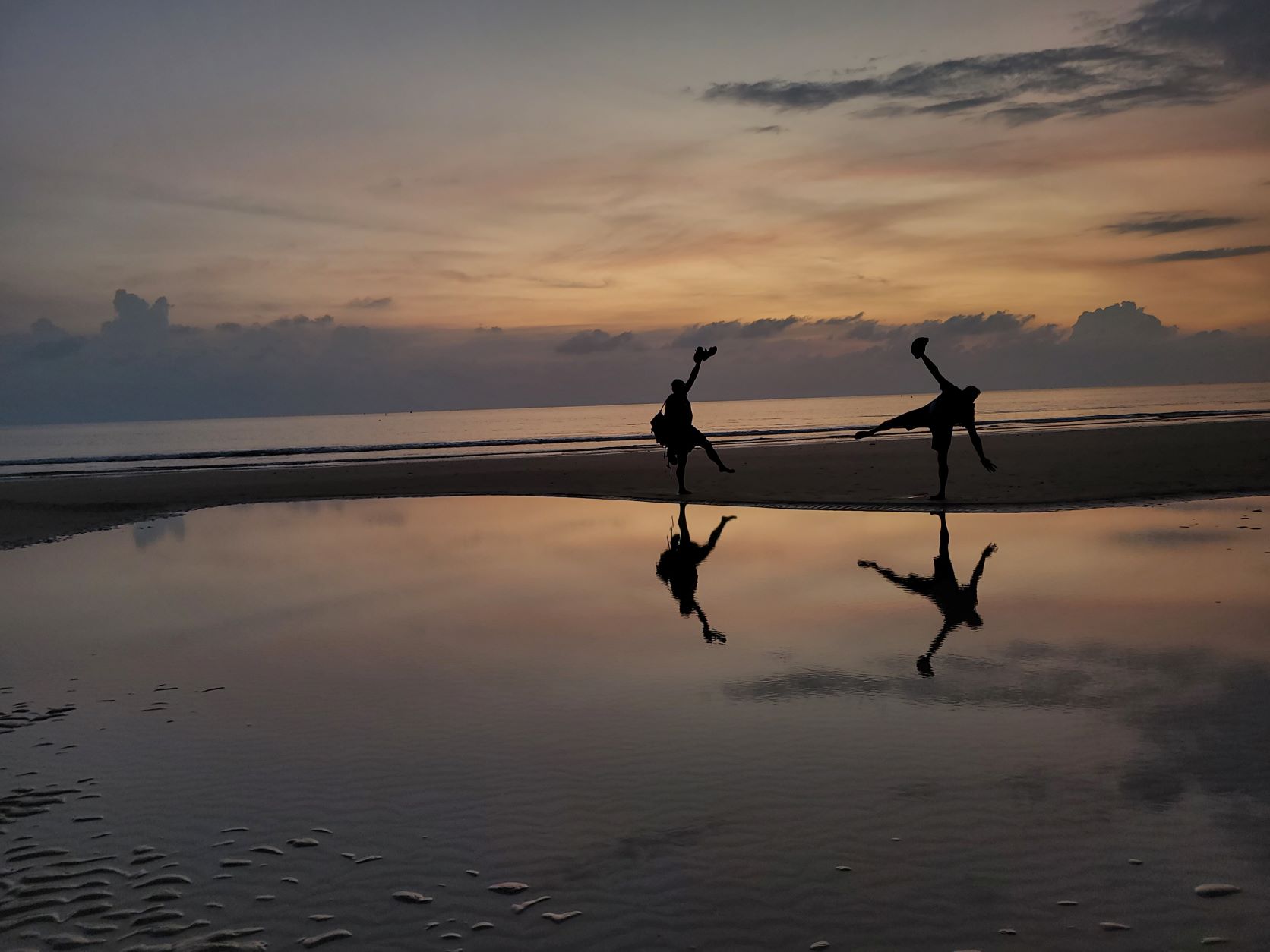 Wir gelangen im Goodmorning-Hotel in Takua Pa an, ein lokales, sehr sauberes, gut geführtes, günstiges Hotel. Wir richten uns ein, und abends fahren wir an den Surf-Beach, lassen den Abend bei Sonnenuntergang und thailändischem Nachtessen, Spiel und Spass ausklingen. Das war wieder ein ereignisreicher Beach-Tag.