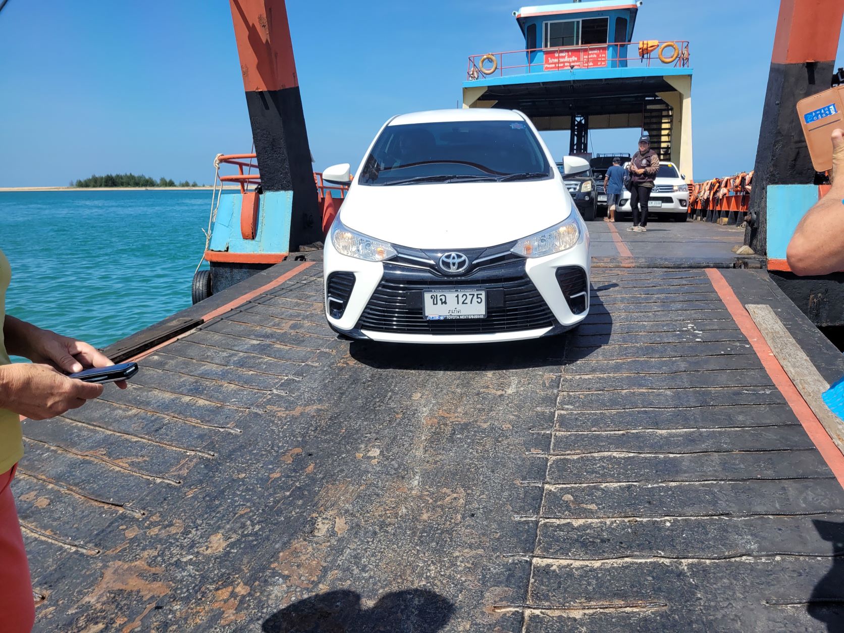 Do 12.1.2023 - Weiter gehts heute auf die Insel Ko Kho Khao mit der Fähre, auf die Fähre gelangt man nur mit, vorsichtig retour einparken und ausser Fahrer alle aussteigen, spannend, noch nie gesehen haha.